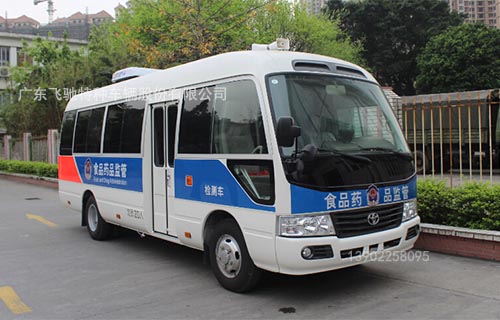 車頂選裝天線,車高3210mm;車頂可選裝行李架(車高3000mm),車頂可選裝頂置空調(車高為2900mm),整備質量為4780kg,可選裝廣播用喇叭。可選裝倒車監視器,后登車背梯(車長為7200mm)??梢苑忾]全部或部分側窗及后窗;車頂可選裝攝像系統(車高3050mm),整備質量為4580kg;左右兩側均可選裝肓窗;隨原車選裝后雙開門,可選裝自動門。ABS系統型號/生產廠家為:89540-36090/DENSO CORPORATION。配備有檢測專用設備,市電接口,蓄電池,UPS,工控機,發電機,檢測工作桌柜,頂置空調等。發動機最大凈功率為171kW; |